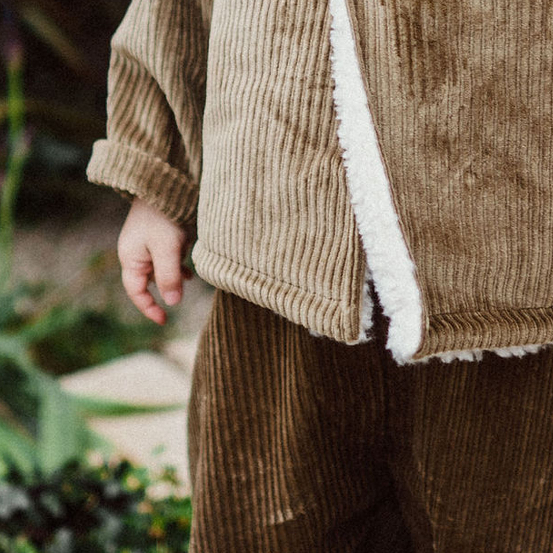 Confectionné en velours côtelé camel, ce manteau bébé/enfant est doublé en moumoute écrue toute douce, idéale pour garder votre enfant bien au chaud tout au long de la saison.