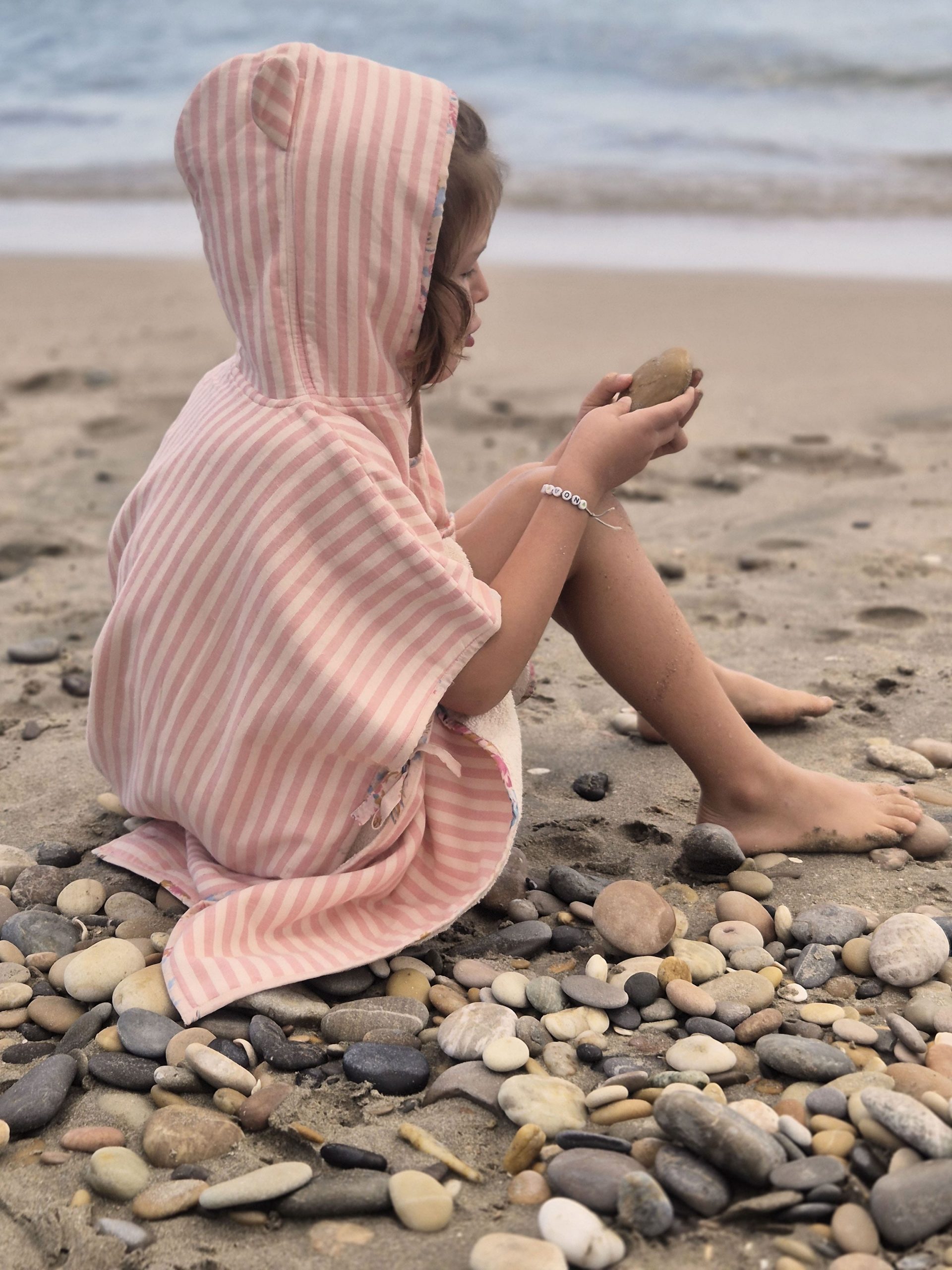 Sa coupe pratique avec capuche intégrée et  petites oreilles d’ourson garde la tête de l’enfant bien au chaud, tandis que son design rayé rose apporte une touche ludique et tendance. Idéal pour la maison ou pour les sorties de bain, ce poncho transforme chaque instant en moment de confort et de douceur.