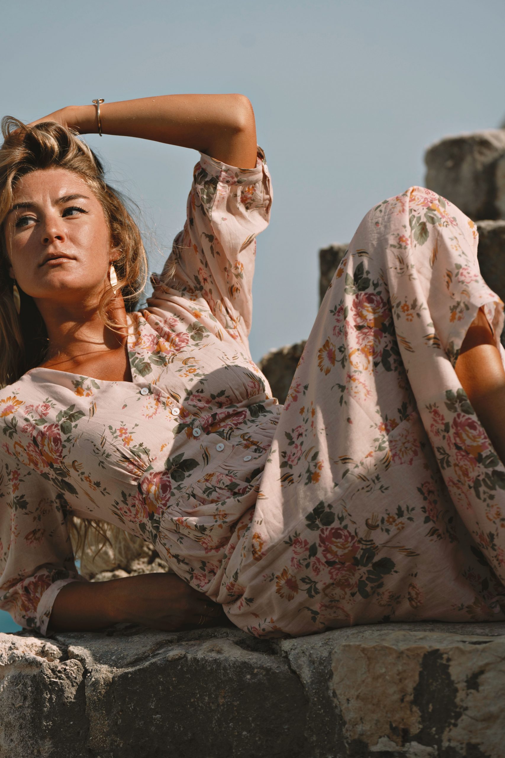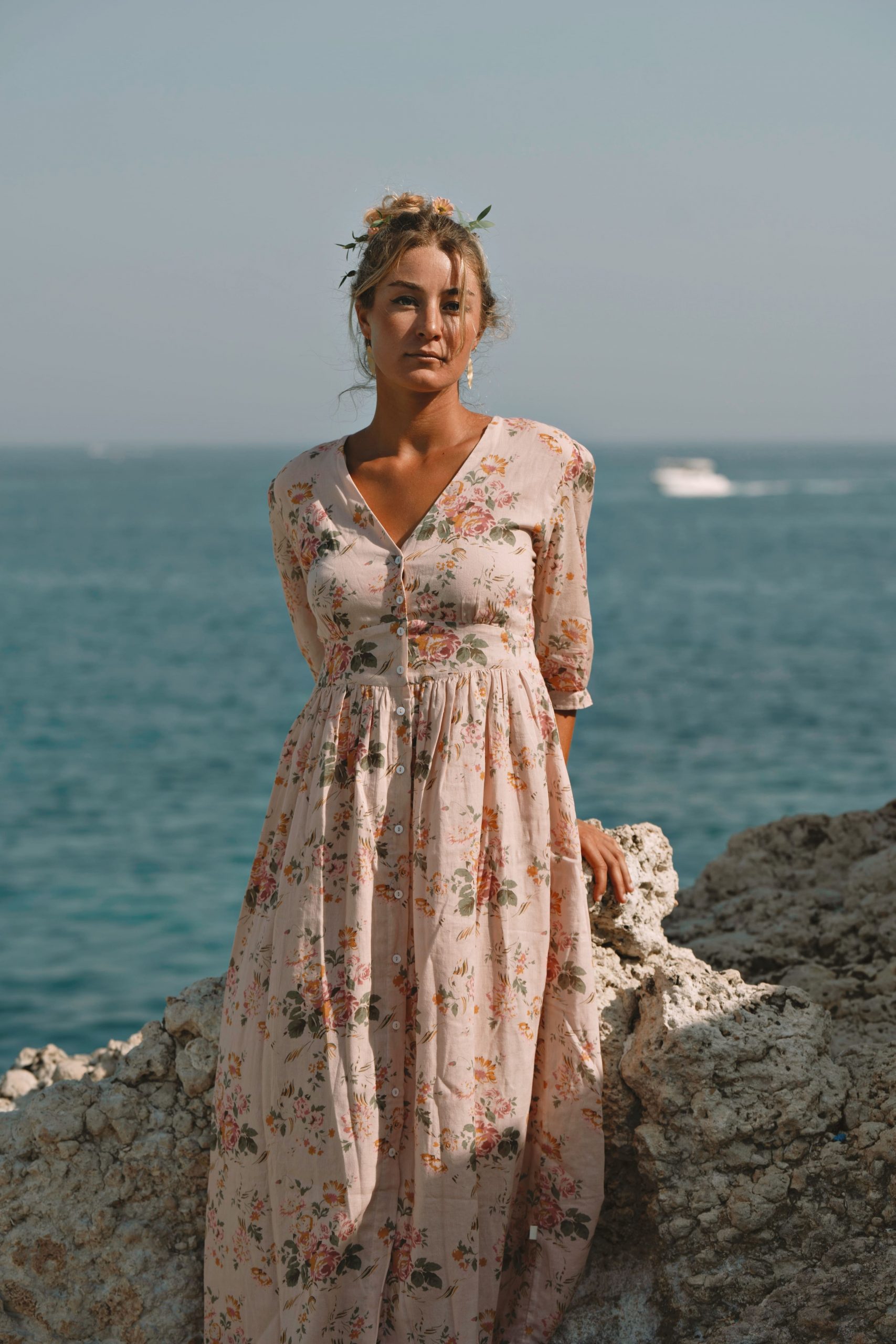 La robe Appoline Fleur incarne la féminité avec son imprimé fleuri délicat et sa coupe longue fluide. Confectionnée en 100% coton voile, elle est légère, respirante et agréable à porter tout au long de la saison.