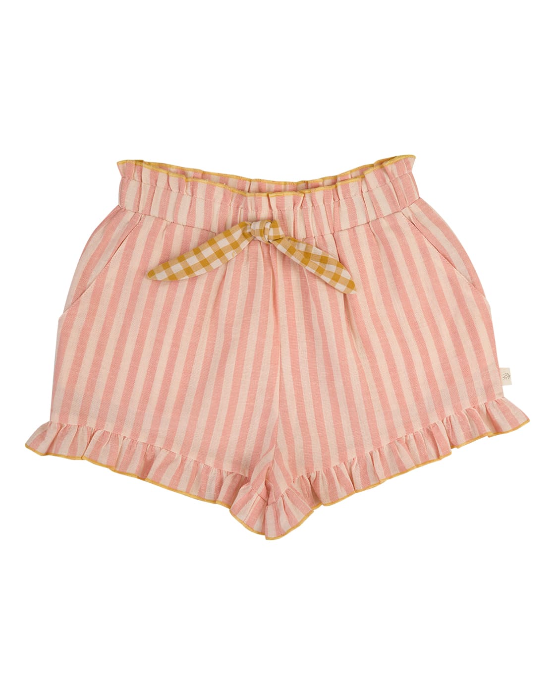 Ce short fille en 100% coton allie confort et charme. Sa taille élastique assure une liberté de mouvement idéale pour le quotidien, tandis que le petit nœud vichy à la taille apporte une touche tendre et raffinée. Le volant délicat sur le bas ajoute une finition légère et féminine, parfaite pour les journées ensoleillées. Un indispensable à la fois pratique et plein de douceur.